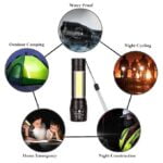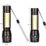 This flashlight boasts a range of features that make it stand out in the market. The body is constructed from high-quality aluminium, ensuring durability and a lightweight feel. The zoomable function allows you to adjust the focus from a wide beam to a narrow spot, providing flexibility depending on your requirements. The integration of XPE COB LED technology ensures bright and efficient lighting, making it a perfect companion for any situation.