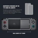 - ????Supports phones up to 173 mm in length: Smartphones are getting bigger to keep pace with the times and add more technology. For this reason, GameSir X2 Bluetooth phone controller gamepad which supports phones up to 173 mm in length; ????Easy attach and detachable with smartphones: Align the phone on the right side of the gamepad and pull the left side of the gamepad, install the phone into the fixed position of the Gamepad, and see how easily the phone is attached to the gamepad. Similarly, you can easily detach the phone from the gamepad.